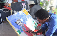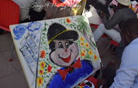 Below are pictures of other persons along with my buddies who were at the art booth. Two of them are professionals while the third guy is a graphic designer. Initially he was going for the joker but along the line I guess he missed it and ended up painting a happy clown. He did good work though, but I would have preferred the joker. Art that comes with darkness or pain are the best to me.